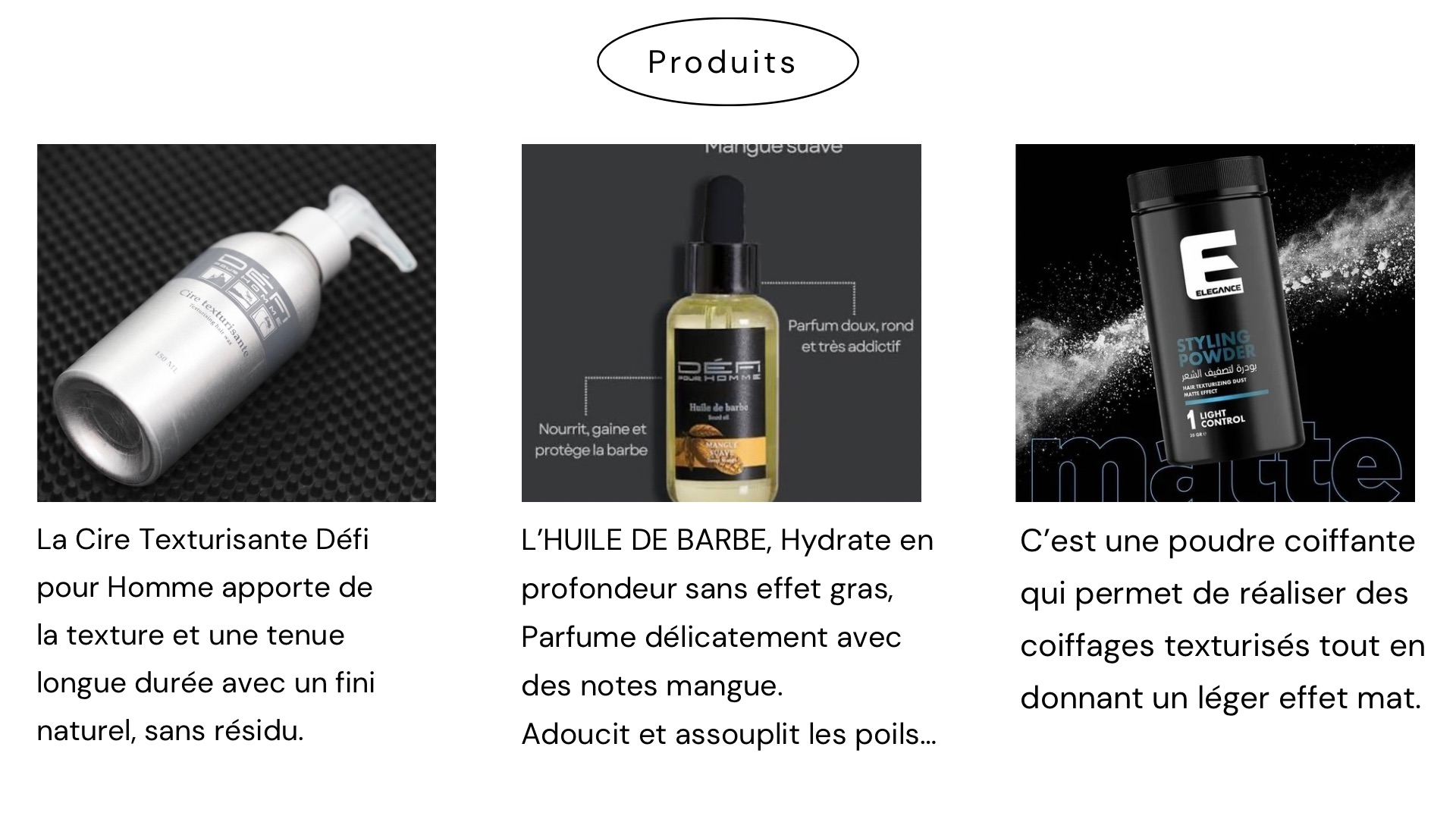Services : Baume à barbe, Coiffure »